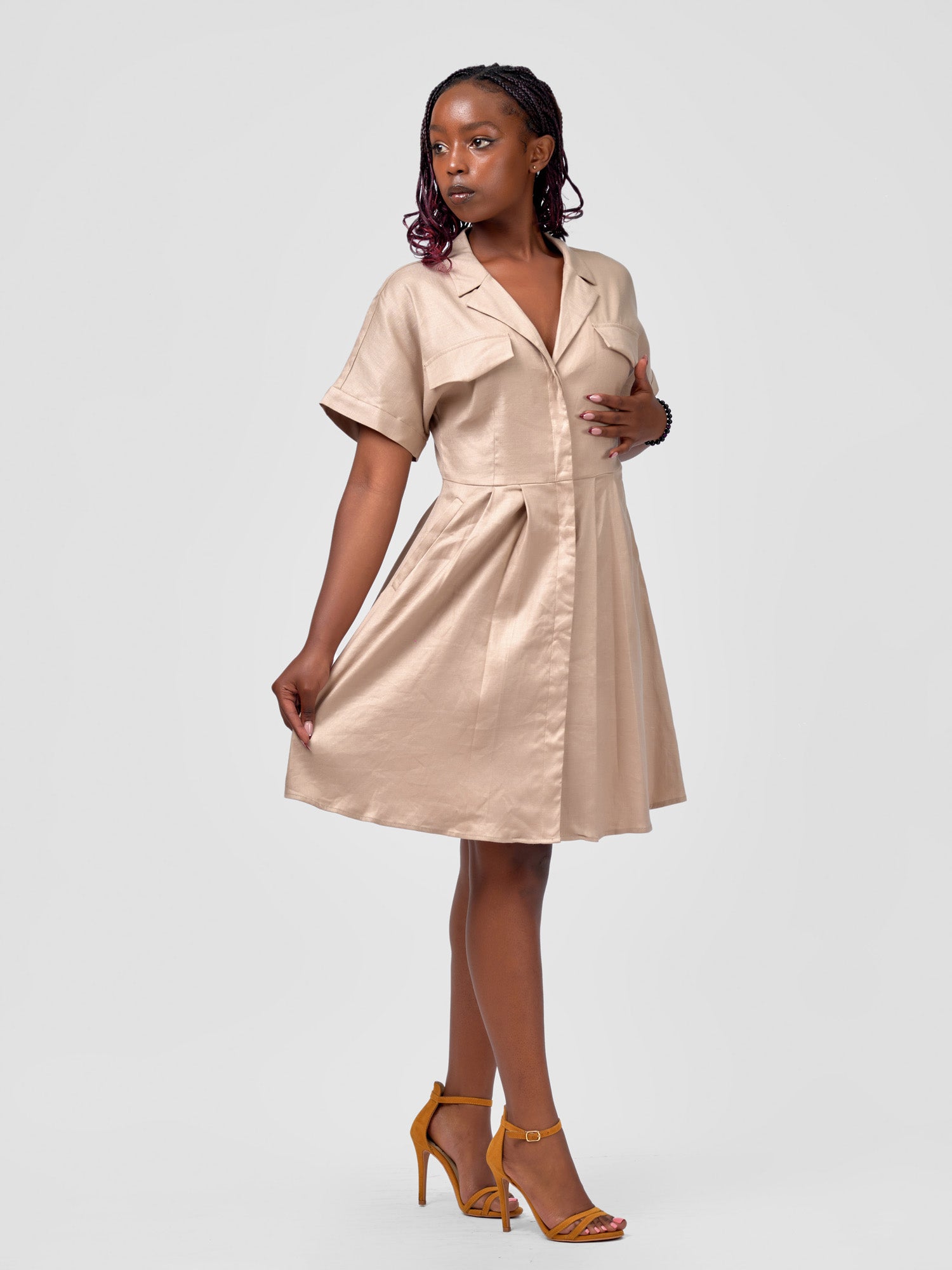 Embrace relaxed style with our Light Tan Cotton Shirt Dress. Designed in a comfortable knee-length cut, this dress features short sleeves for a practical look. Made from breathable cotton, it’s perfect for both casual outings and laid-back workdays.